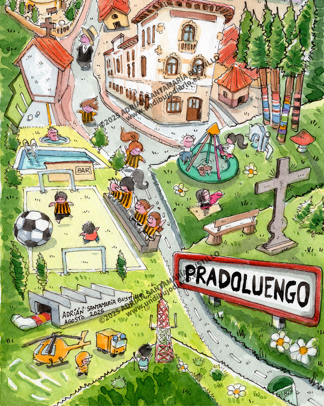 Reproducción gliceé de mi dibujo de Pradoluengo. Incluye la explicación detallada. Soporte de algodón puro. Sistema de 12 tintas de archivo. Calidad museo garantizada y fabricada por mi en mi estudio.